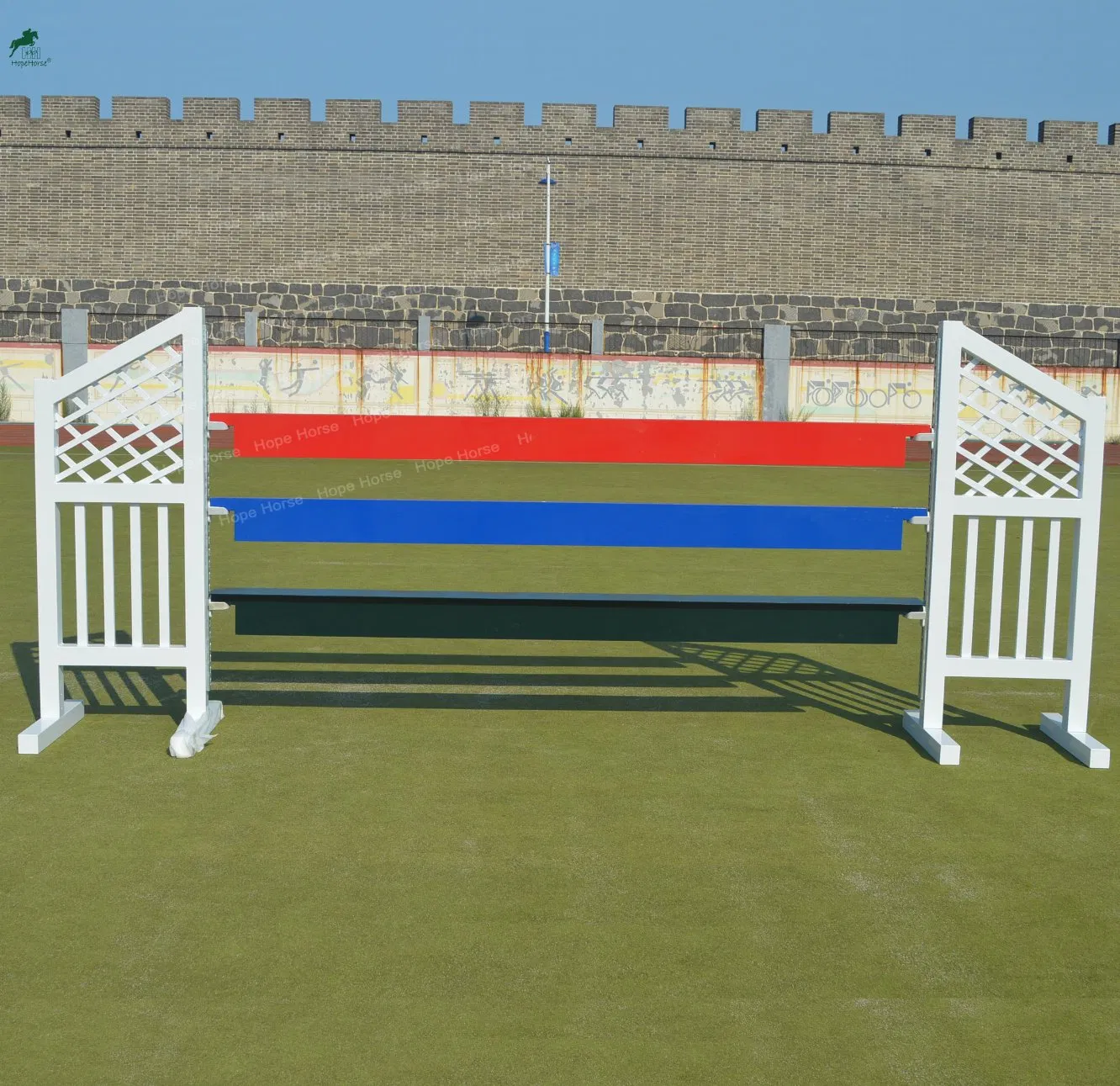 Aluminum Horse Jumps Equestrian Jumping Horse ObstacleProduct DescriptionHope horse show jumps include jumping wings,jump gates, jump fillers,jumping poles, etc.They are made of aluminum tube, never rust and rot, light and easy to move, much stronger thanplastic ones.Shape, color, size, logo can be ......