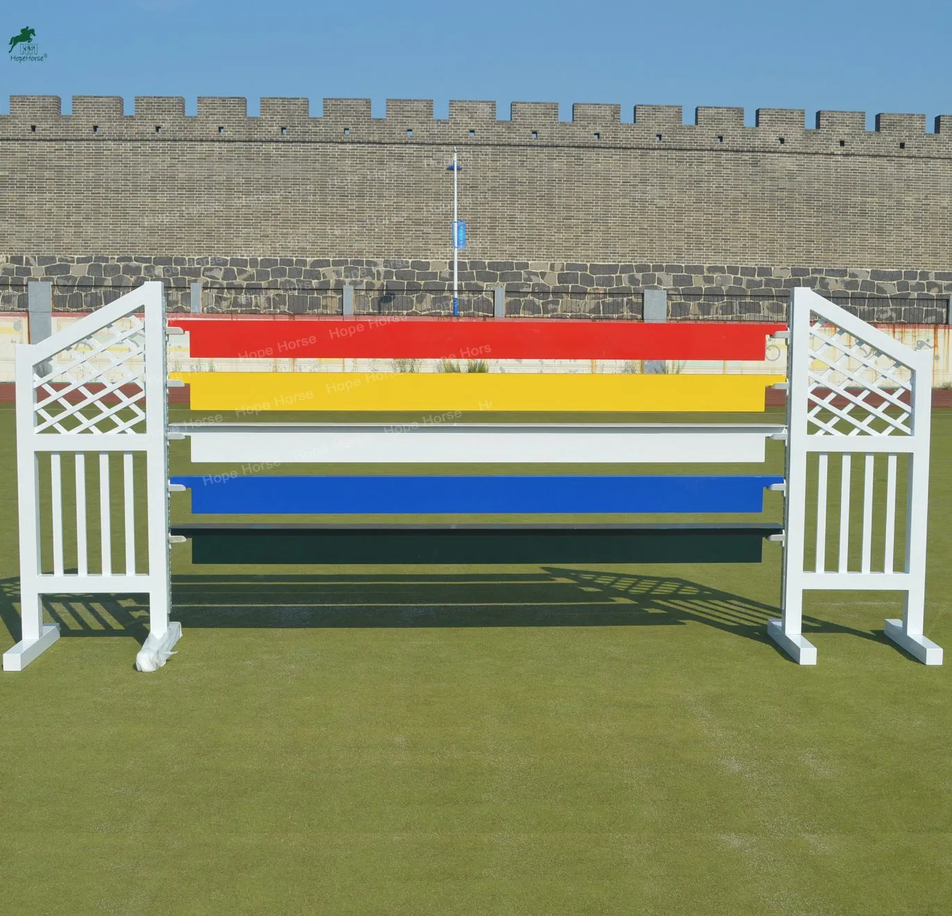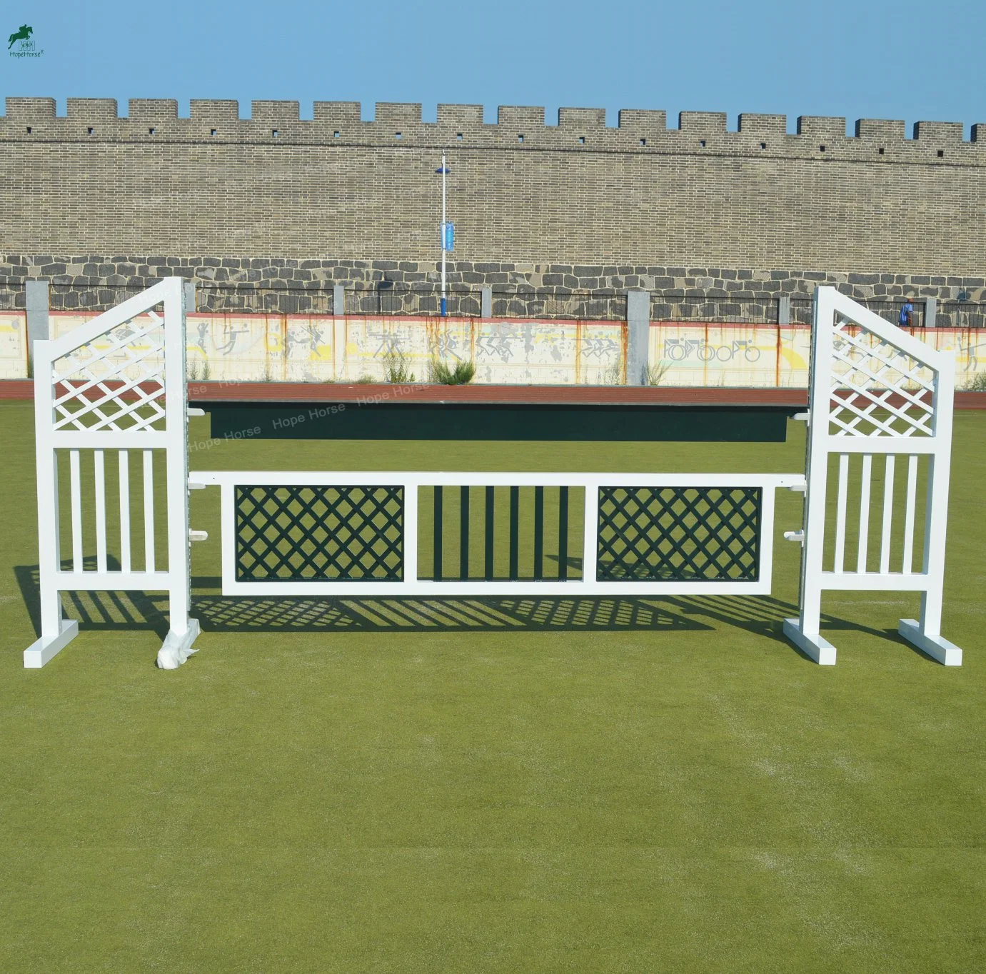 Aluminum mesh and tubes horse show jump wings Product DescriptionHope horse show jumps include jumping wings,jump gates, jump fillers,jumping poles, etc.They are made of aluminum tube, never rust and rot, light and easy to move, much stronger thanplastic ones.Shape, color, size, logo can be customiz......