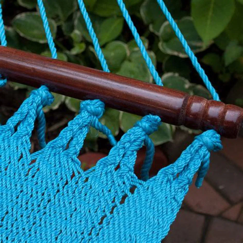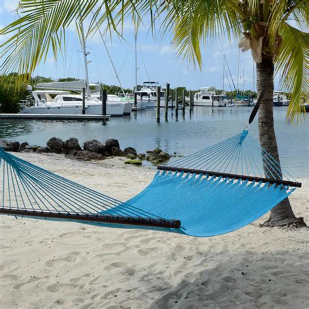 Features/Details: comfortable for two micro weave high qualitysoft polyestermarine varnished spreader bar Description: comfortable for two or even family hangingHand woven close knit micro-weave bed - for the ultimate in comfort100% polyester cords - to prevent rot, mold or mildew - seasons of worry......