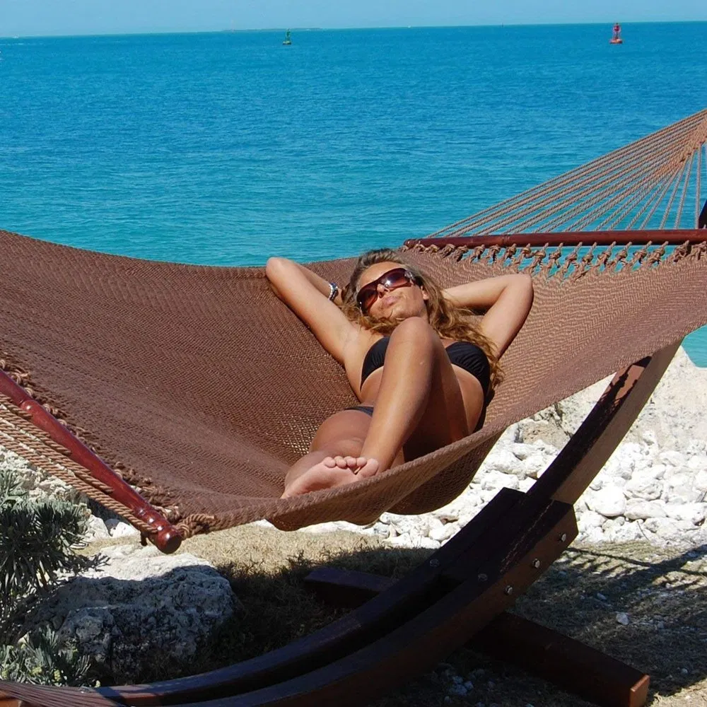 Features/Details: comfortable for two micro weave high qualitysoft polyestermarine varnished spreader bar Description: comfortable for two or even family hangingHand woven close knit micro-weave bed - for the ultimate in comfort100% polyester cords - to prevent rot, mold or mildew - seasons of worry......