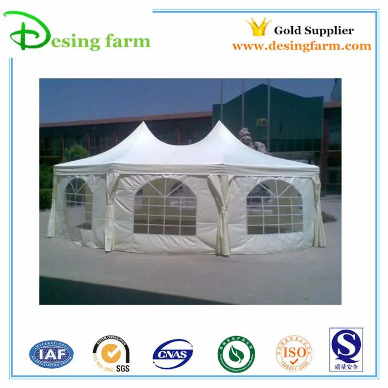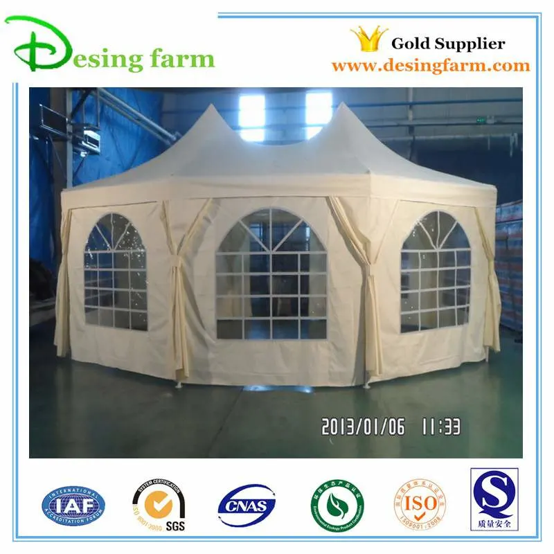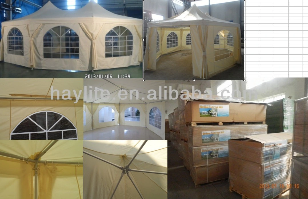 | PA2040 | 2X12M pagoda tent.Frame:powder coated steel pipe,33x0.85mm, 28x0.85mm, connector 32x1.35mm,38x1.35. Fabric:230g/m2 Polyester,PVC coated; Packed in one box. With one PC of 84x37.5cm color label Loadability:325pcs/40'hq. |