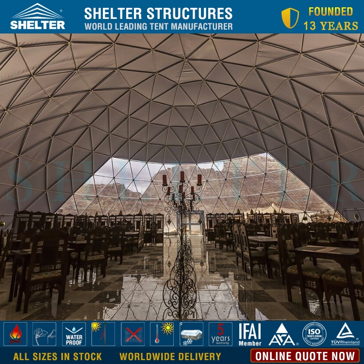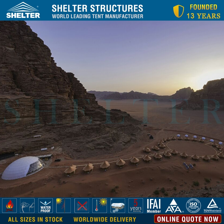 Event dome tents from Shelter are in a robust framework to build 4 season glamping hotel under all weather conditions. Size varied from dia.6m to 30m for the applications of glamping accommodation as well as campsite recreation facilities.