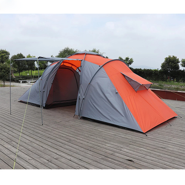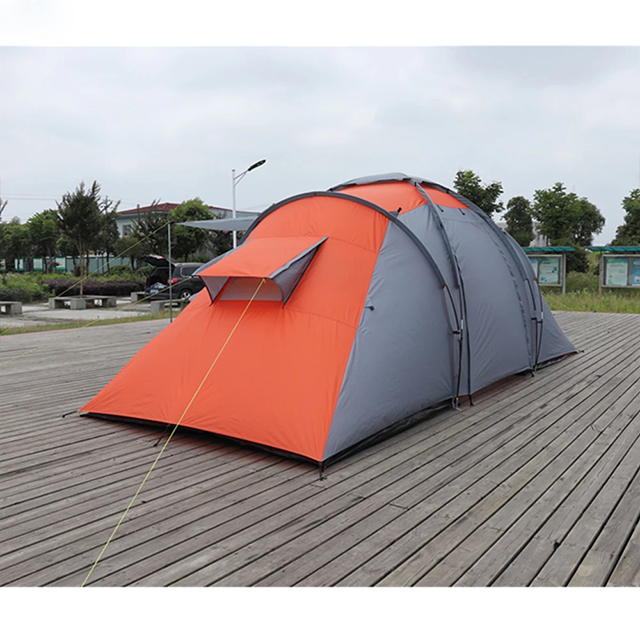Outdoor Camping TentProduct detailssize : 560*220*190CMoutsheet fabric:210T Waterproof Rip Stop polyester PU2000mmPole: Dia 16mm steel tube + DIa 9.5MM fiberglass PoleInner fabric: 190T breathable fabric +B3 Meshfloor:210D Rip Stop oxford PU3000C: 8.5kgs Suitabke for 6-8 person Packing :carry ......