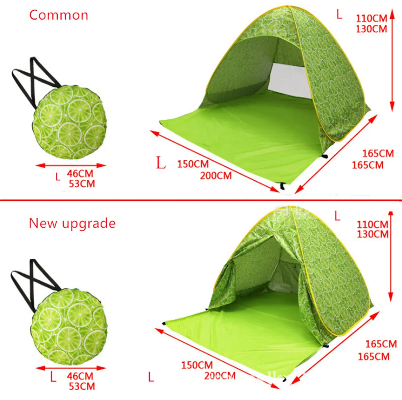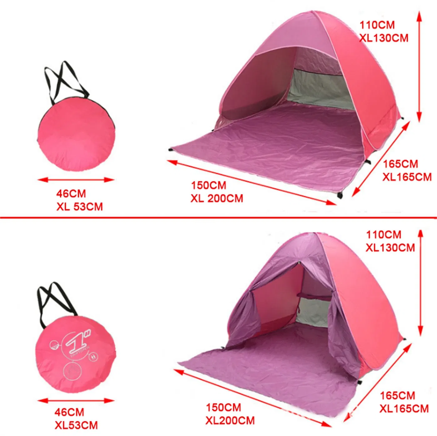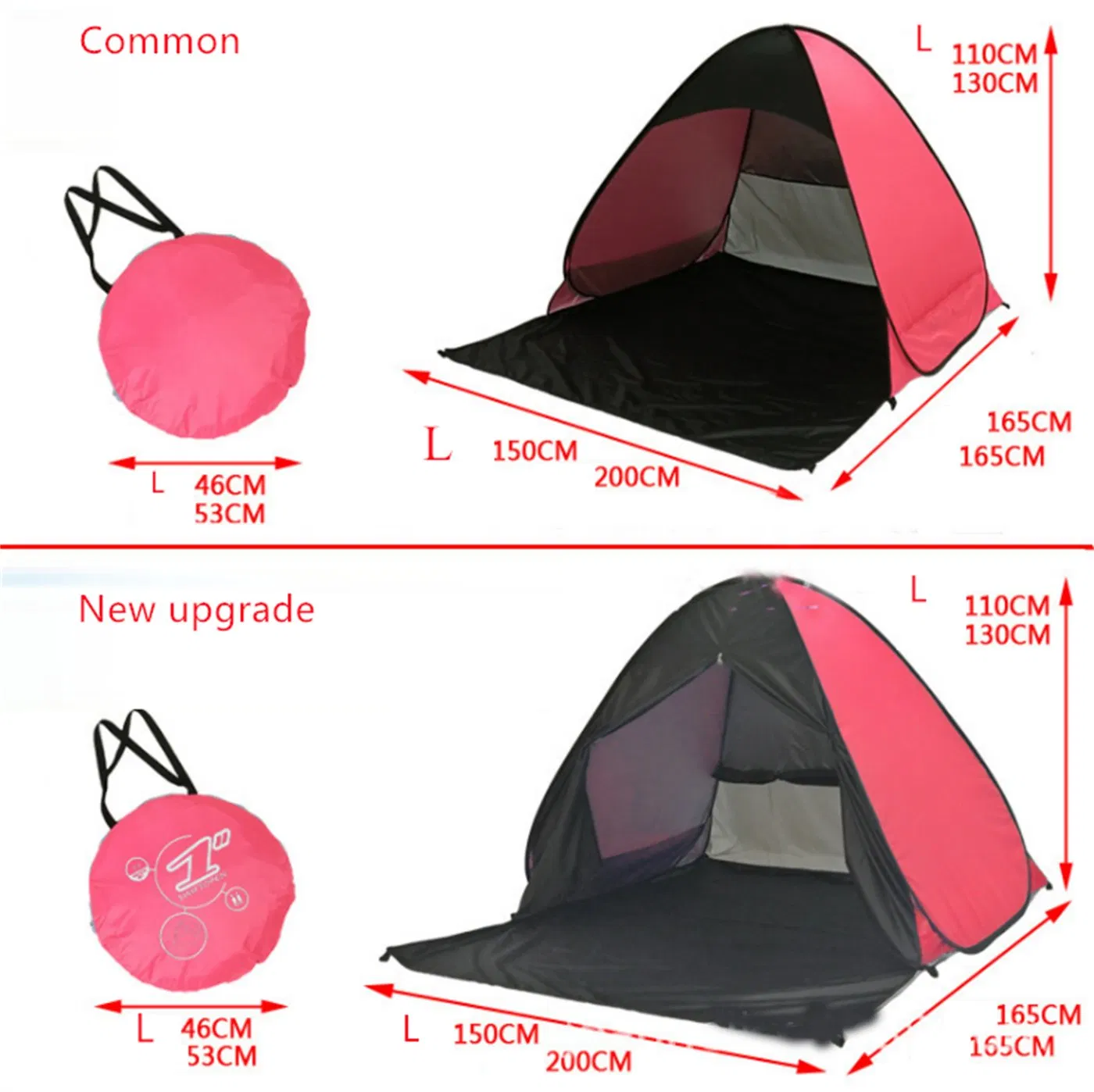 Product Description Product nameBeach tentProduct material190T silver-coated polyester Oxford clothSize L150*165*110CMSize XL200*165*130CMPackage size 53CM*53CMWeight1KGcolor36 different color or OEM colorsPackage includedGround nails*6,storage Bag*1ApplicationsPark, Beach, seaside, woods, outdoor A......